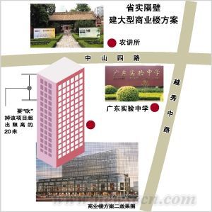 根據(jù)去年廣州通過(guò)的歷史文化名城保護(hù)規(guī)劃,中山四路位于歷史城區(qū)范圍,新建建筑最高的高度不能超過(guò)30米。但中山四路的商業(yè)樓項(xiàng)目提出的三個(gè)建設(shè)方案,都超出了這個(gè)限高范圍,與會(huì)專家就此展開(kāi)了最激烈的討論。因?yàn)楦鶕?jù)該地區(qū)原先的法定控規(guī),容積率可以達(dá)到方案建設(shè)高度符合的5.6,如果要砍掉其超出30米部分的高度,政府要對(duì)業(yè)主方進(jìn)行經(jīng)濟(jì)補(bǔ)償;如果不砍掉其高度,則擔(dān)憂對(duì)農(nóng)講所和周邊圖書(shū)館等文化建筑造成影響。